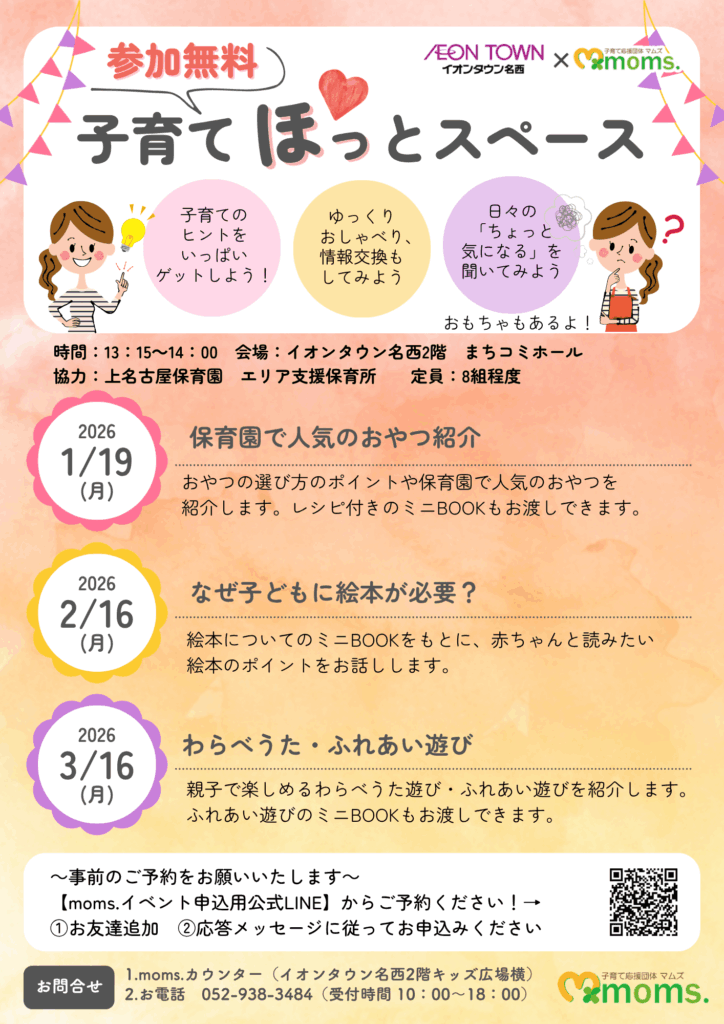 1.上記イベントのお申込みは、moms.イベント申込専用の公式LINEを使用させていただきます。