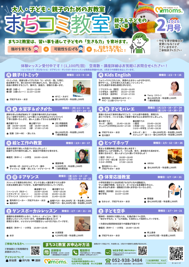 2026-01-10 / 最終更新日 : 2026-01-10 moms 開催日程 【講座&イベント案内】2026年2月 2026年2月のまちコミ教室 親子&子どもの習い事・1日講座・イベントの案内です。